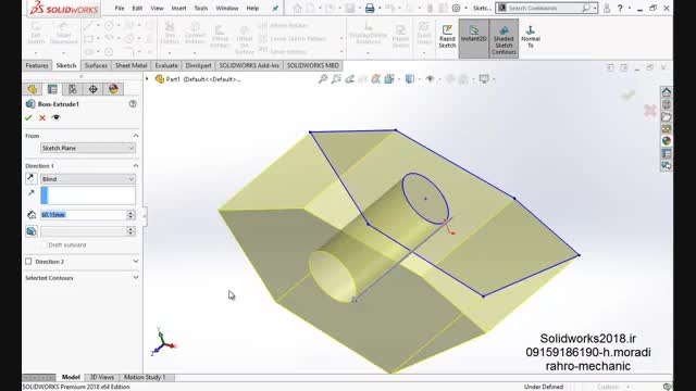 آموزش نرم افزار سالیدورک طراحی مدل ساده با دستور extrude solidworks فیلم های آموزشی بعدی وارد سایت شوید solidworks2018.ir