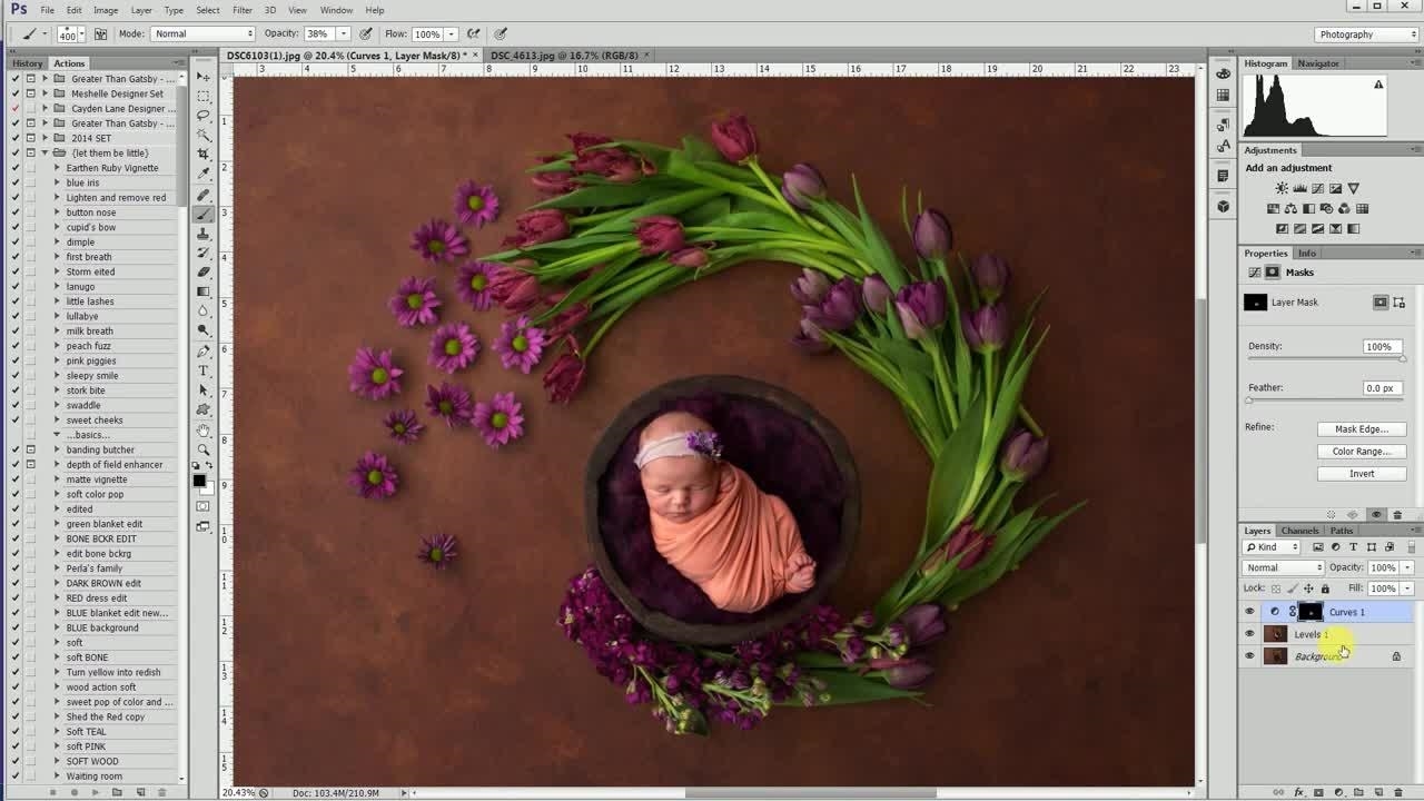 آموزش ترکیب بندی و فتومونتاژ عکس نوزاد با بکدراپ در فتوشاپ