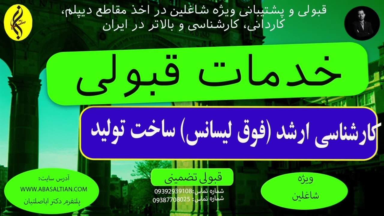 خدمات قبولی | اخذ مدرک فوق لیسانس ساخت تولید | 09387708025