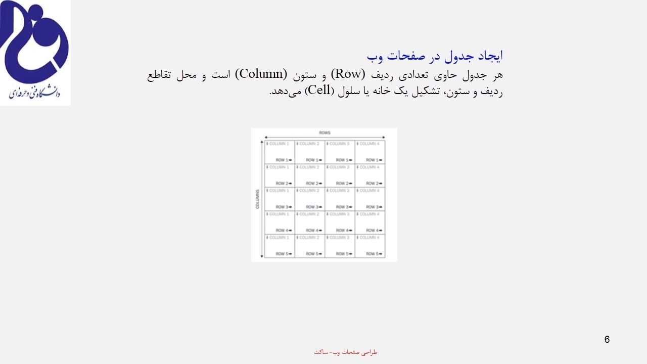 ایجاد جدول (Table) و لیست با کدهای html و CSS