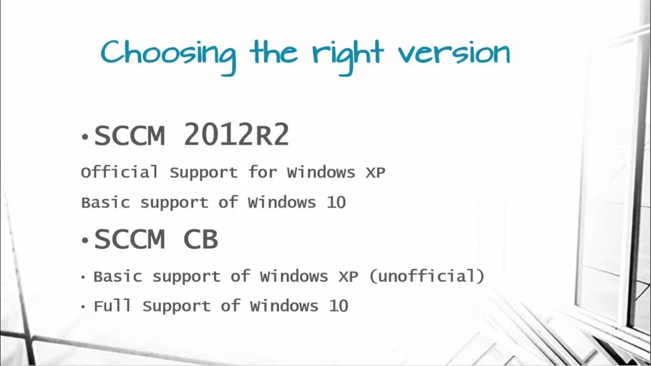 در این قسمت یاد میگیریم که با توجه به شرایط موجود می توانیم از چه نسخه ای از راهکار SCCM استفاده نمائیم. سپس سایر پیش نیازها و ملزومات با توجه به آن مشخص می شوند.