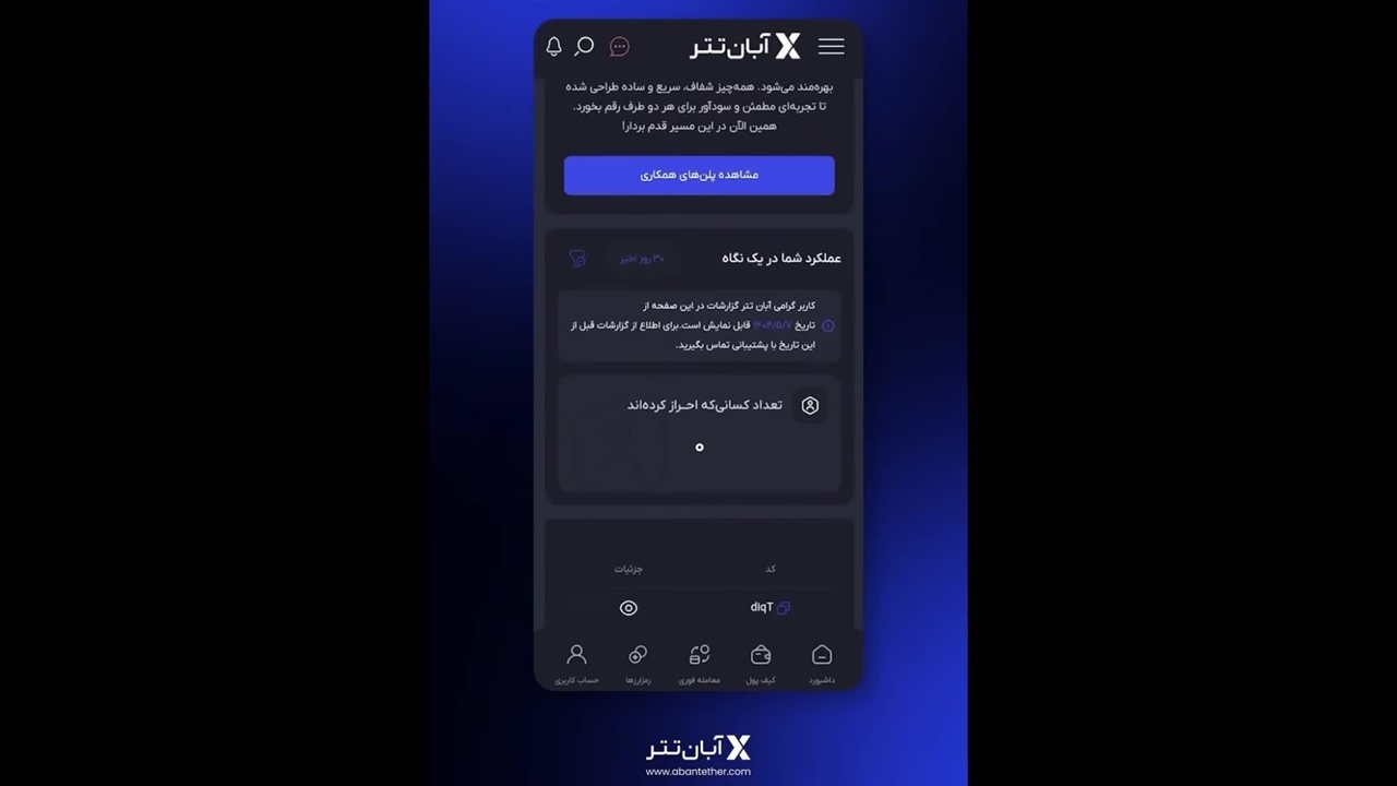 با کد معرف آبان تتر 30 درصد کارمزد معاملات دوستان خود را هدیه بگیرید!