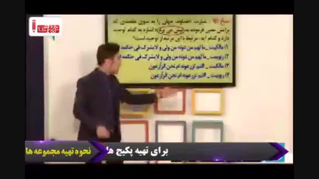 آموزش کامل مبحث توحید شناسی بصورت فول انیمیشن همراه با حل فوق العاده تست ها توسط استاد یوسفیان از شبکه اول سیما (حل تست های توحید شناسی) کل دین و زندگی کنکور را فقط در 4 روز بدون فراموشی یاد بگیرید و بالای 90 بزنید.آموزش کامل بدون جا گذاشتن یک کلمه با رمز و تصویر و انیمیشن برای اولین بار در کشور توسط استاد یوسفیان مدرس شبکه های یک ، سه و آموزش و موسسه حرف آخر . شماره تماس برای تهیه پکیج های کامل و جمع بندی دین و زندگی کنکور و همچنین شرکت در همایش های دینی صد: 09120067693