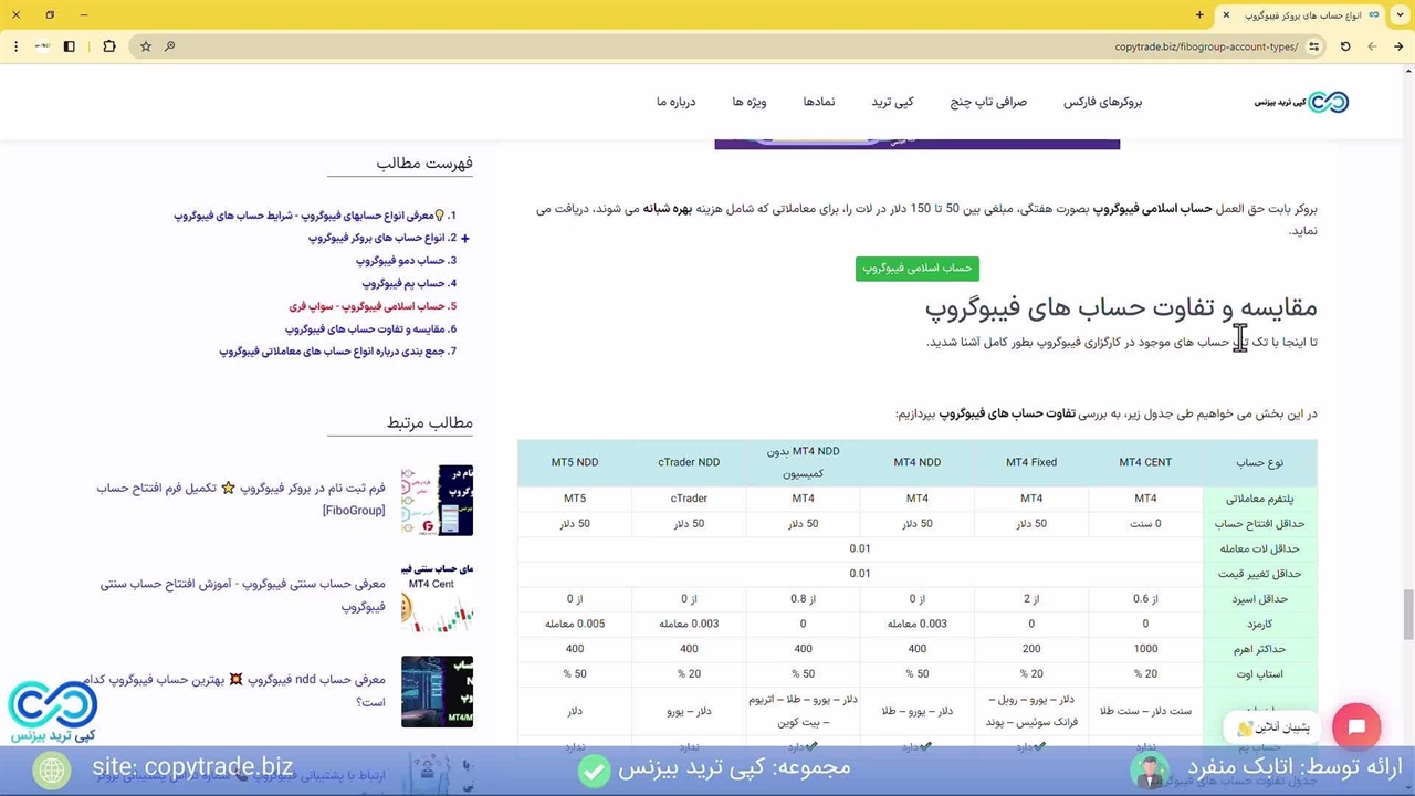 آموزش انواع حساب بروکر فیبوگروپ 2024 - مقایسه انواع حسابهای فیبوگروپ [NDD+فیکس+سنتی] -[شماره 233]