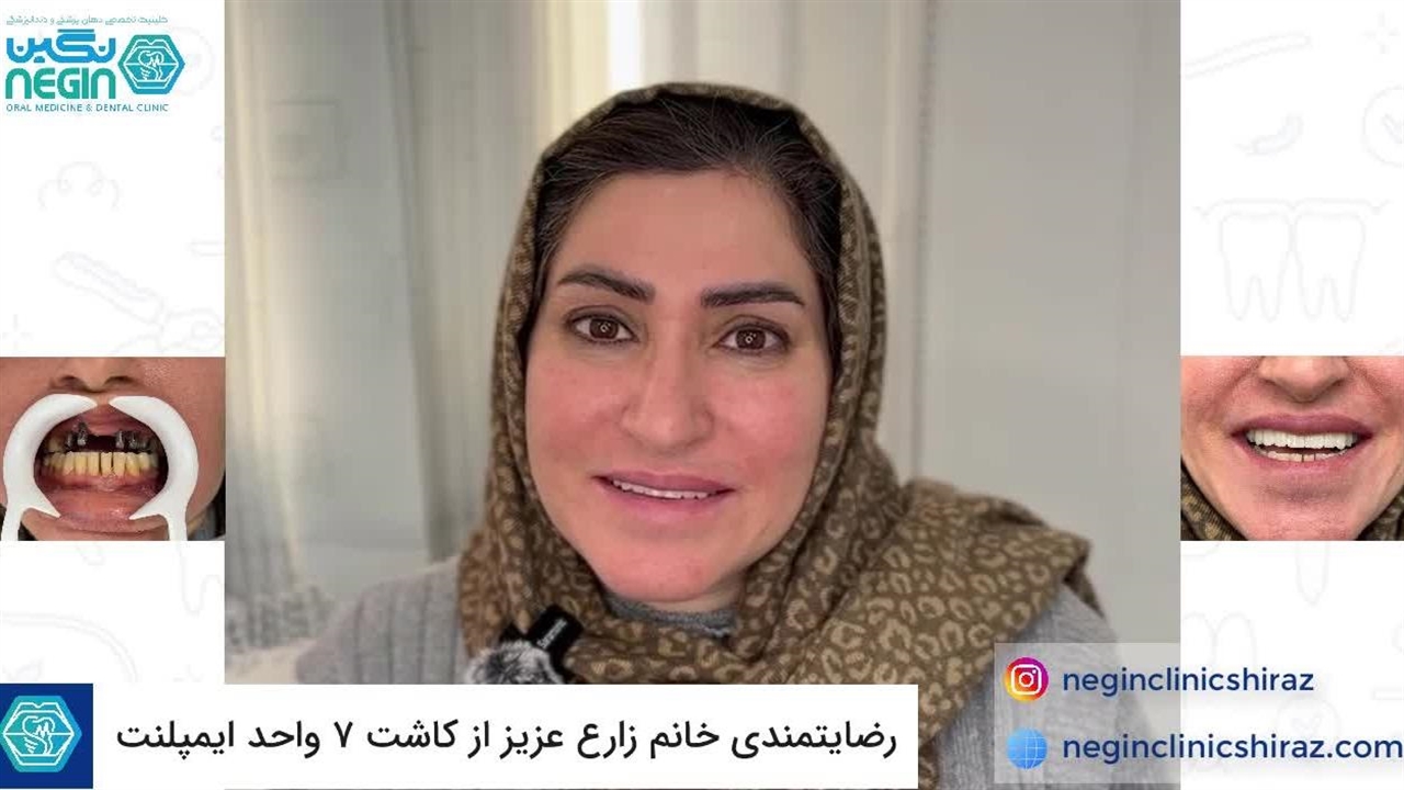 رضایتمندی خانم زارع عزیز از کاشت 7 واحد ایمپلنت فک بالا در شیراز