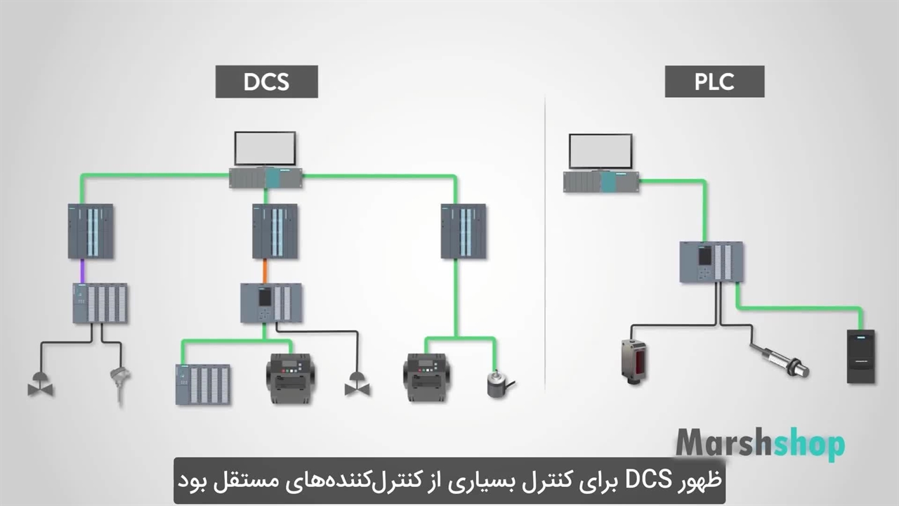 PLC یا کنترل کننده منطقی برنامه پذیر و DCS که به آن سیستم کنترل توزیع شده می گویند هر دو در اتوماسیون صنعتی کاربرد گستردهای دارند اما تفاوتهای اساسی بین آنها وجود دارد. معمولا معمولا پی ال سی ها برای کنترل ماشینهای منفرد یا فرآیندهای سادهتر به کار میروند و دارای معماری متمرکز هستند. آنها برای تصمیمگیریهای منطقی بر اساس ورودیها و خروجیهای دیجیتال طراحی شدهاند. از سوی دیگر، DCSها برای کنترل فرآیندهای بزرگتر و پیچیدهتر در کارخانهها استفاده میشوند و معماری توزیع شده دارند. DCSها قابلیت کنترل آنالوگ و دیجیتال را دارند و برای مدیریت و نظارت بر کل فرآیند تولید به کار میروند. به طور خلاصه، PLCها برای کنترل ماشینها و DCSها برای کنترل فرآیندها مناسبتر هستند. جهت آشنایی بیشتر با این دو سیستم پیشنهاد می کنیم به مقاله ای که در این باره در سایت مارش شاپ منتشر شده مراجعه کنید.