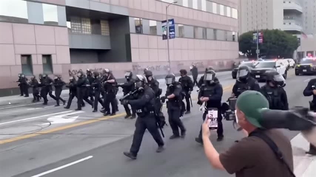 معترضان پس از یورش پلیس لسآنجلس، ساختمان فدرال را تخریب و با پلیس درگیر شدند