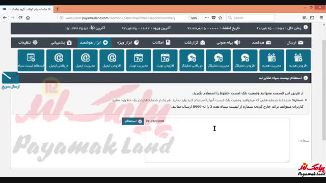 آموزش کار با بخش استعلام لیست سیاه پنل پیامک لند