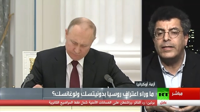 وقع الرئیس الروسی فلادیمیر بوتین على مرسومین یقضیان باعتراف روسیا باستقلال جمهوریتی دونیتسک ولوغانسک الشعبیتین عن أوکرانیا. وسبق ذلک وفی خطاب وجهه للشعب الروسی قال بوتین إن سکان منطقة دونباس البالغ عددهم أربعة ملایین نسمة "یتعرضون لإبادة جماعیة، وذلک فقط بسبب رفضهم للانقلاب على السلطة فی أوکرانیا المدعوم غربیا عام 2014 .. کما أشار إلى ان موسکو سعت للحفاظ على وحدة أراضی أوکرانیا متهما سلطات کییف بعدم تنفیذ اتفاقیات مینسک وعدم الاعتراف بأی حل لقضیة دونباس سوى العسکری.