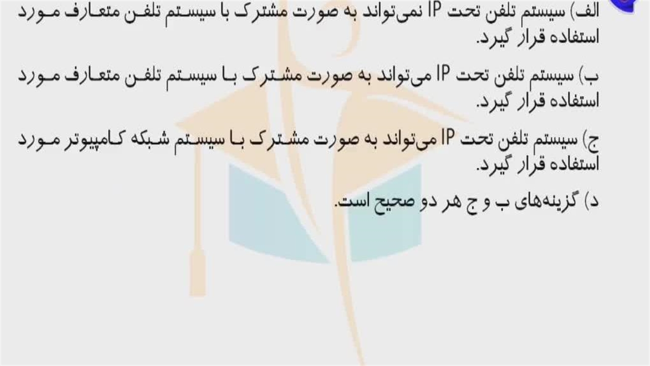 ب) سیستم تلفن IP می¬تواند به صورت مشترک با سیستم تلفن متعارف مورد استفاده قرار گیرد.