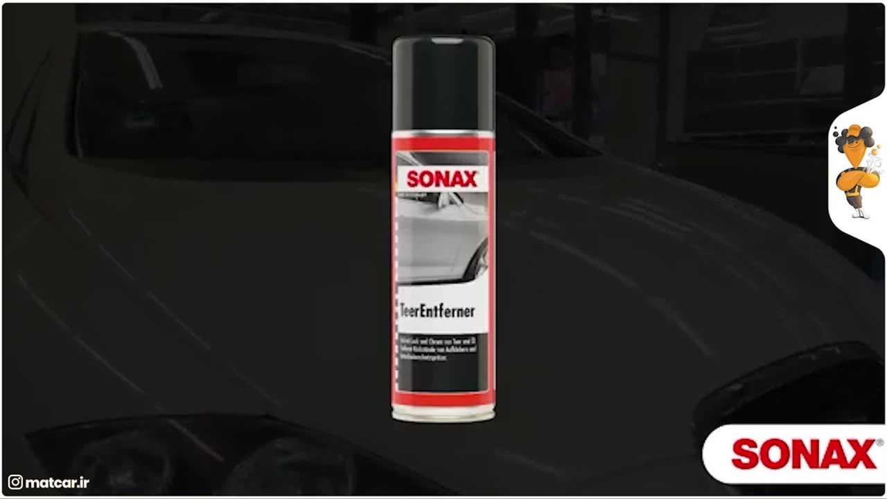 اسپری قیر پاک کن سوناکس مناسب برای پاک کردن اثر قیر، پد آسفالت، گریس ، انواع روغن ، خاک و... بوده ، که بدون آسیب رساندن به رنگ بدنه خودرو و یا ایجاد خط و خش اثر تمامی این موارد را از روی سطح بدنه خودرو شما برمی دارد.