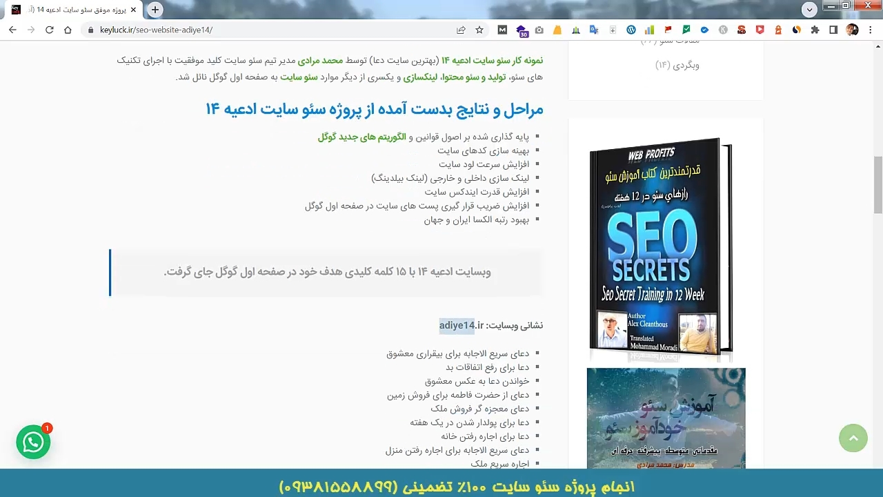 پروژه سئو سایت دعا ادعیه 14 با 15 کلمه کلیدی در صفحه اول گوگل