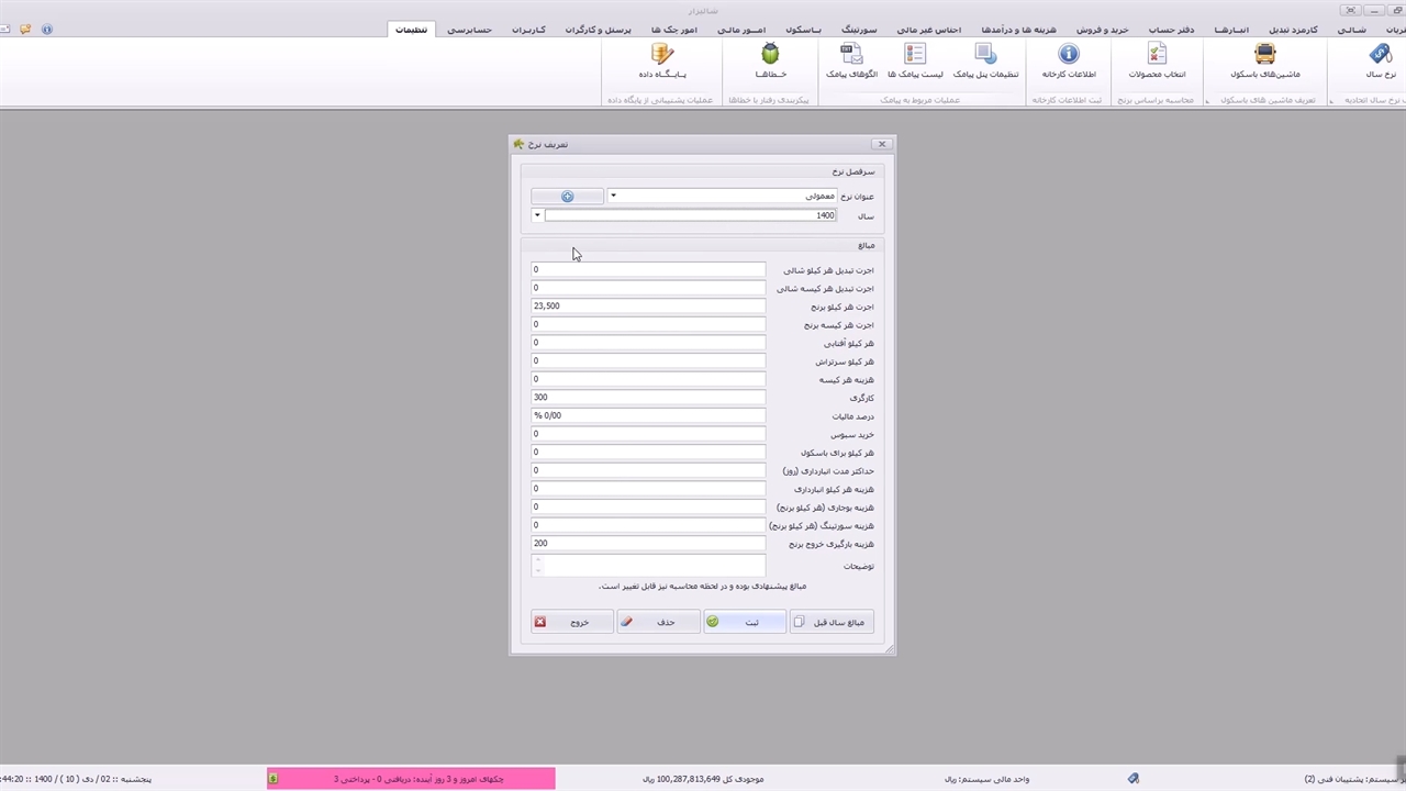 1- تنظیمات نرخ سال و تعریف بی نهایت نرخ توسط کاربر