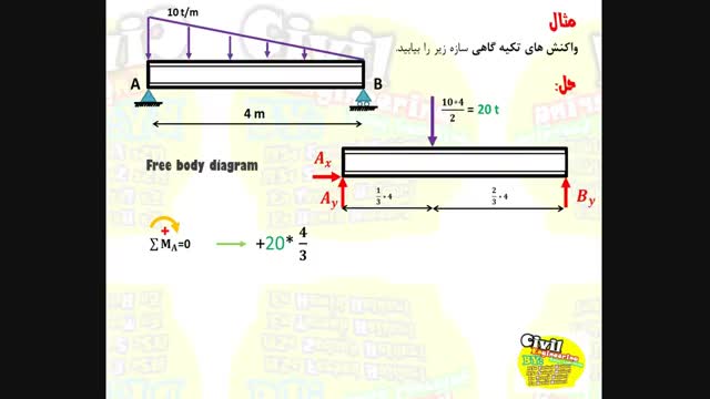 محاسبه ی واکنش تکیه گاهی درس استاتیک رشته ی انجنیری سیول از گروپ انجنیری برادران حیدری (انجنیر فرهاد حیدری)