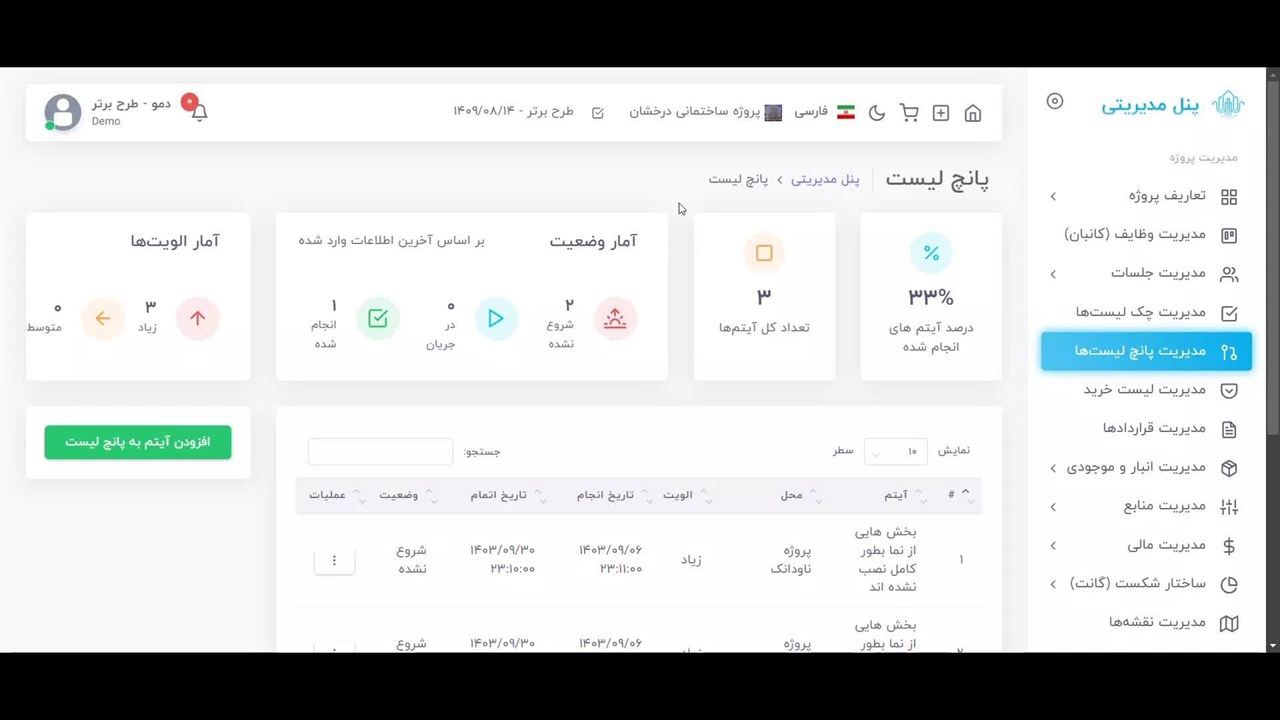 تغییر وضعیت انجام آیتمهای پانچ لیست در کارگاهِتو