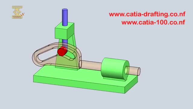 آموزش طراحی مکانیزمها : http://www.catia-100.co.nf مکانیزم انتقال حرکت خطی تحت زاویه 90 درجه با استفاده از بادامک