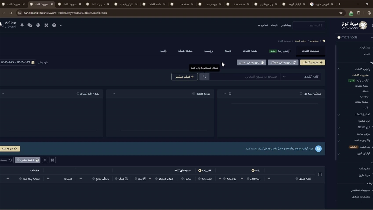 آموزش ردیاب کلمات - ابزار سئوی میزفا تولز