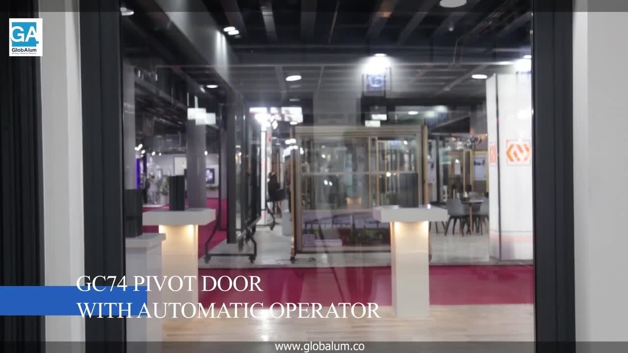 در پیوت مدرن و لوکس که توسط شرکت پاردیک وین ساخته شده، به نمایش گذاشته میشود. این درب با استفاده از پروفیل آلومینیوم گلوبالوم مدل GC74 طراحی و اجرا شده است که به دلیل استحکام، زیبایی و قابلیت اجرای ابعاد بزرگ، یکی از بهترین گزینهها برای ورودیهای خاص و لاکچری محسوب میشود. درهای پیوت به دلیل مکانیزم لولا محوری خود، باز و بسته شدن روان و بیصدایی دارند و جلوهای مینیمال و مدرن به فضا میبخشند.