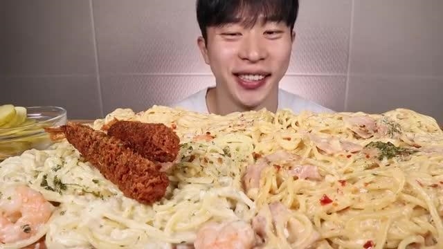 ASMR MUKBANG SHIMP BACON Crimp pasta