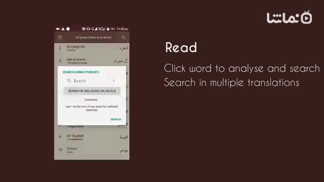 این برنامه اندرویدی را از آدرس https://myket.ir/app/com.greentech.quran دانلود کنید.