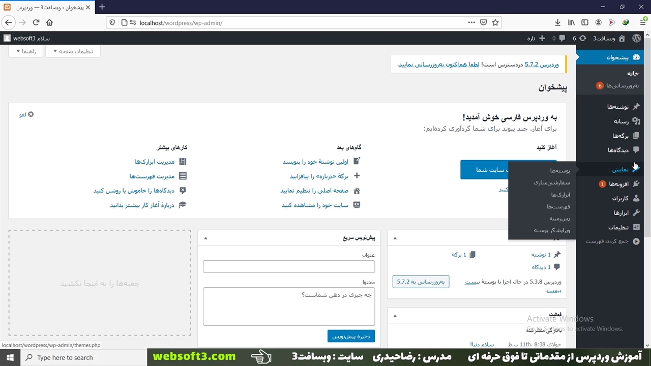 آموزش کار با پیشخوان وردپرس + فیلم آموزشی در وبسافت3
