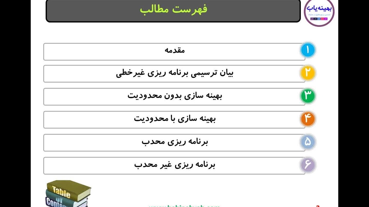 در این درس به آموزش برنامه ریزی غیرخطی و روش های حل مسائل با تابع هدف و محدودیت های خطی در مثال های متنوع می پردازیم. برای دریافت ویدیوی کامل، جزوه آموزشی و فایل ارایه این درس به وب سایت گروه بهینه یاب به نشانیwww.behinehyab.com مراجعه کنید.