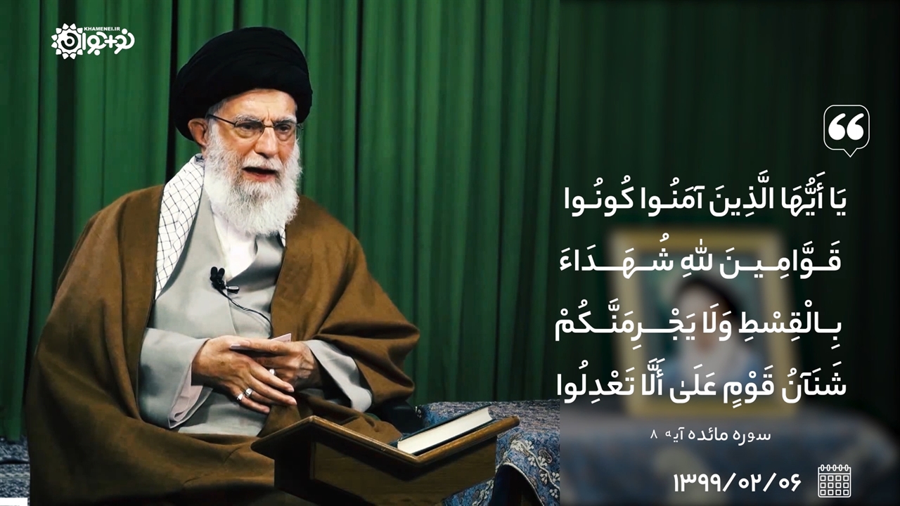 اگر با کسی مخالفاید، با کسی دشمناید، این موجب نشود که درباره او بیانصافی کنید، درباره او ظلم و بیعدالتی به خرج بدهید. ببینید، این یک دستور کاربردی است. بله، شما ممکن است با کسی مخالف باشید امّا [این] موجب نشود که نسبت به او به خاطر مخالفتتان در آنجایی که حق با اوست، آن حق را پنهان بدارید، یا مخفی کنید، یا آن حق را ضایع کنید و بیعدالتی و بیانصافی نسبت به او به خرج بدهید.