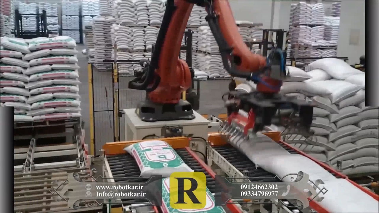 استفاده از ربات صنعتی برای جابجایی | ربات کار | بازوی رباتیک پالتایزر