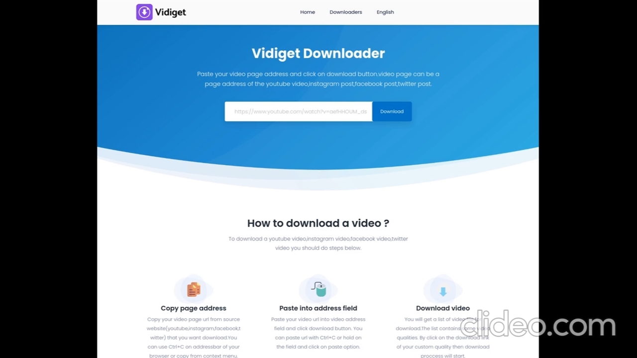Vidiget is an online video downloader that help you to easily download and save your youtube videos.Vidiget also support some websites such instagram , facebook , twitter. When you submit a video to download vidiget prepare a list of video qualities for you then you can choose your favorite quality and also you can download video as mp3 file