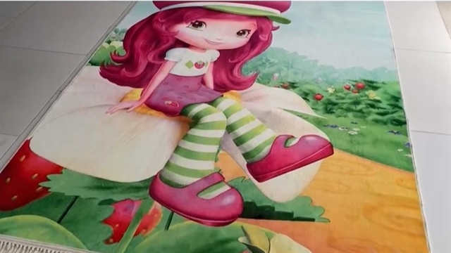 ست فرش کودک چاپی و پرده توت فرنگی کد1034