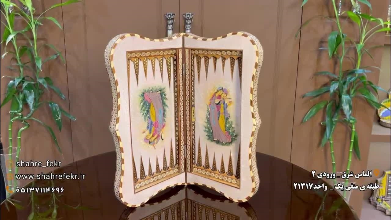 تخته نرد ها خاتم از چوب وصدف واستخوان شتر وسیم های برنجی یکی از زیبا ترین نقاشی های داخل تخته نرد است