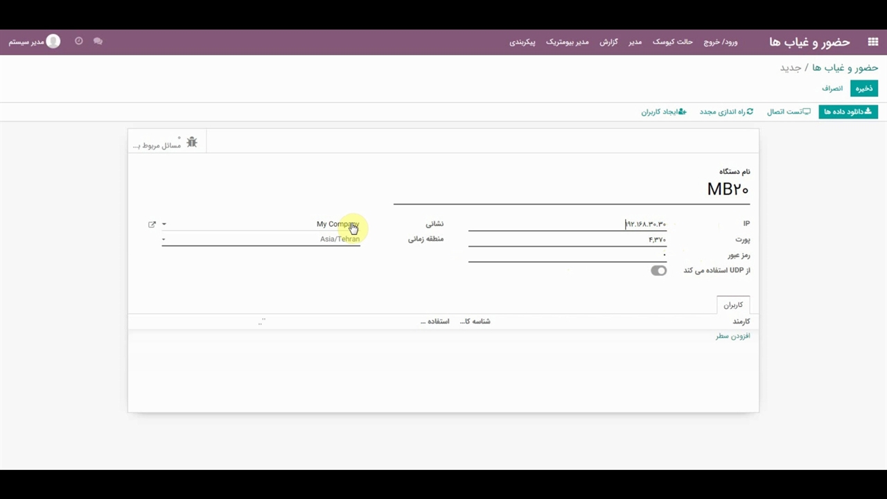 پخش صدا حضورغیاب کاملا سیستمی در Odoo ERP نسخه ۱۴ اشتراکگذاری لیست پخش ۰ نظر ۰ نظر دانلود دانلود ویدیو دانلود کیفیت 1080p ۲۰.۳۷ مگابایت دانلود کیفیت 720p ۱۳.۹۰ مگابایت دانلود کیفیت 480p ۱۰.۵۷ مگابایت دانلود کیفیت 360p ۸.۵۳ مگابایت دانلود کیفیت 240p ۶.۶۰ مگابایت دانلود کیفیت 144p ۵.۴۱ مگابایت گزارش تخلف بیشتر گزینههای بیشتر لیست پخش لایکها گزارش تخلف ۰ لایک TashilGostar منتشر شده در تاریخ ۱۴۰۰/۰۳/۰۲ این کانال دنبال شد دنبال کردهاید دنبال کردن این کانال دنبال کردن ادامه آموزش نظرات لبخند لبخند لغو ثبت نظری برای نمایش وجود ندارد.