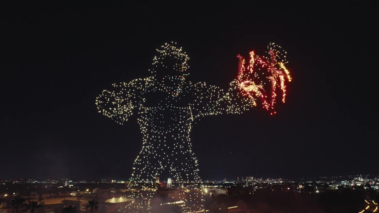Apple TV Plus و Legendary برای تبلیغ فصل دوم سریال Monarch: Legacy of Monsters با اجرای یک نمایش پهپادی ۳۰۰۰تایی در آسمان لسآنجلس، رکورد جهانی گینس را شکستند. نمایشی 12 دقیقه ای با حضور شخصیت هایی از جمله گودزیلا، کنگ و کایجوی جدید Titan X که به یکی از متفاوت ترین کمپین های تبلیغاتی تاریخ تبدیل شد.