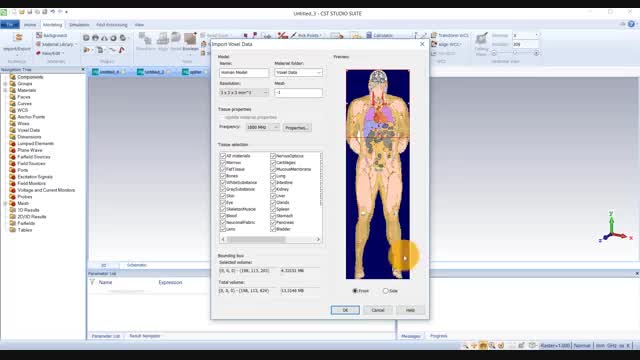 شبیه‌سازی اندام موجود زنده در نرم افزار CST با فرمت Voxel