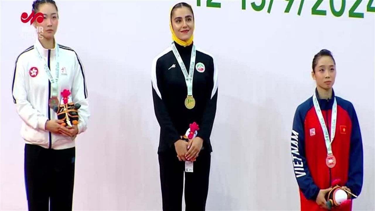 لحظه اهدای مدال زهرا کیانی و هلیا اسدیان در مسابقات قهرمانی آسیا