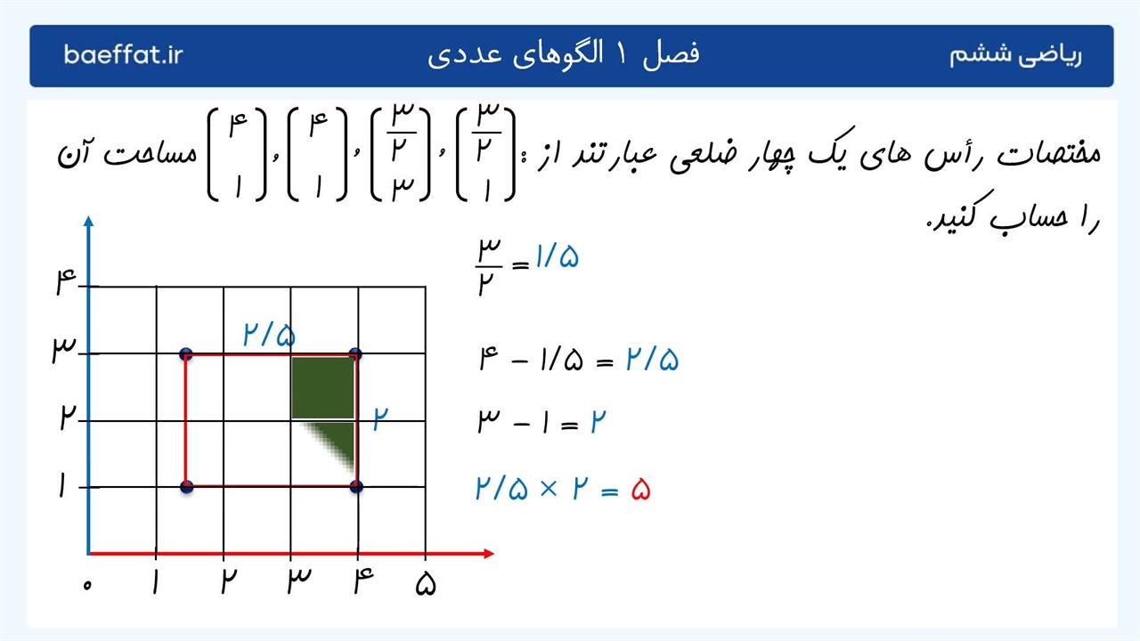 در سال های گذشته برای پیدا کردن مساحت شکل ها ، خود شکل و اندازه ی طول و عرض یا قطر آن را می دادند و از ما می خواستند مساحت شکل داده شده را به دست آوریم در پایه ششم نام شکل و اندازه ی طول و عرض یا قطر را نمی دهند در این صورت ما باید با کمک محورهای مختصات ابتدا نوع شکل سپس اندازه ی اضلاع یا قطر را به دست آوریم و در نهایت با فرمول مربوط به مساحت آن شکل، اندازه ی مساحت را محاسبه کنیم شما در این ویدئو به صورت حرفه ای به دست آوردن مساحت با کمک محورهای مختصات را یاد می گیرید.