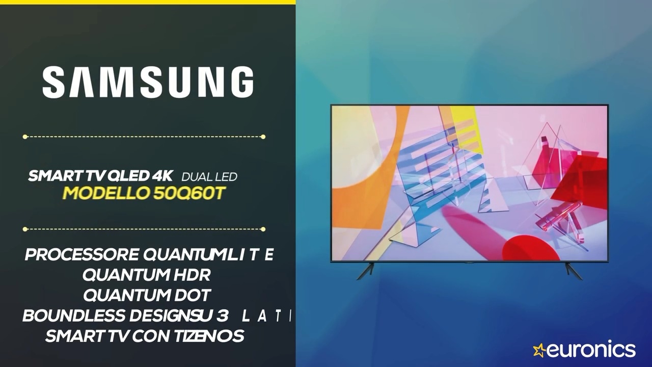 تلویزیون سامسونگ 50Q60T یکی از بهترین و با کیفیت سال 2020 کمپانی بزرگ سامسونگ است محصولی بسیار شیک و زیبا است و از طرفداران زیادی برخودار است و از امکانات بالای بهره میگیرد که باعث محبوبیت مدل Q60T شده تلویزیون 50 اینچ 50Q60T از صفحه نمایش کیولد با اندازه 50 اینچی بهره میگیرد دارای کیفیت تصویر 4K میباشد که تصویری شفاف و بی عیب را در اختیار شما عزیزان میگذارد. همراه با قابلیت Quantum HDR ، تکنولوژی بی نظیر Quantum Dot ، پردازنده ی Quantum Processor 4K Lite همراه با رزولوشن 2160 3840x که تصاویر بی عیب و نقص پخش میکند همچنان دارای سیستم عامل تایزن که از برنامه های Google Assistant ، Amazon Alexa بهره میگیرد. دارای بلندگو های Bass Reflex با توان خروجی 20 وات
