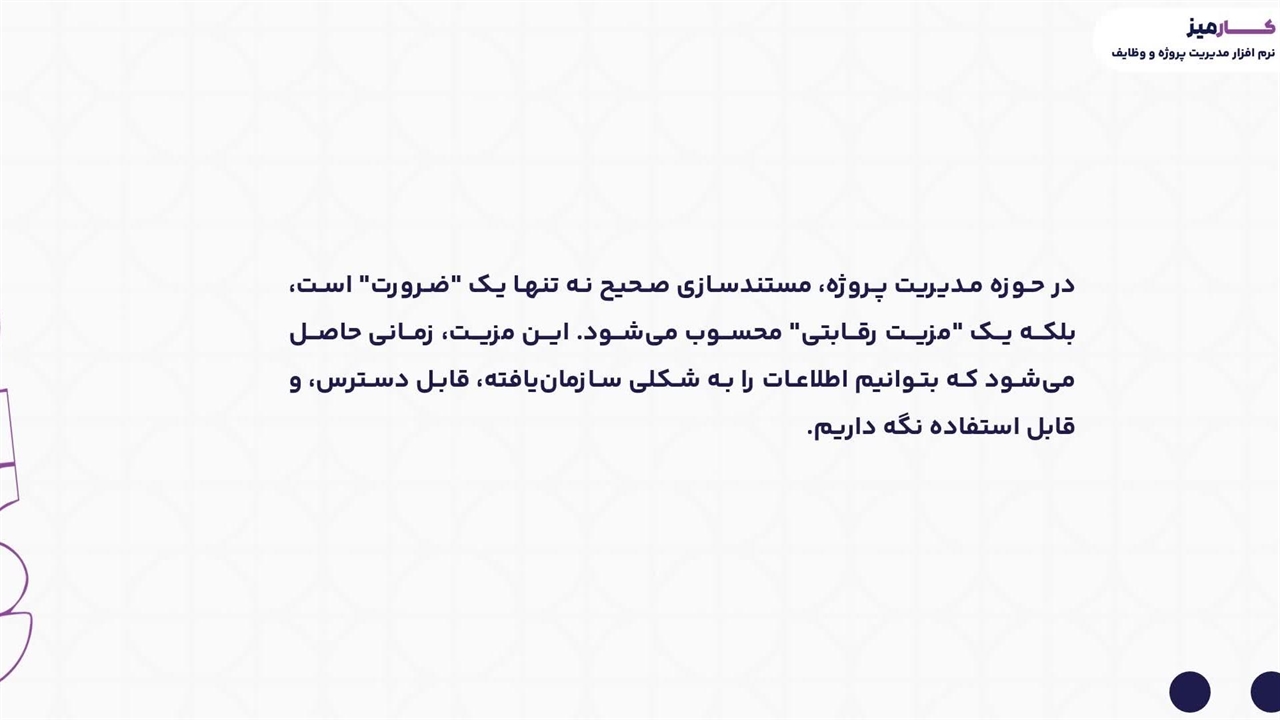 در نهایت، مشخص شد که مستندسازی پروژه، فراتر از یک وظیفه اداری صرف، یک ستون فقرات حیاتی برای موفقیت هر پروژه است. پراکندگی اطلاعات، اتلاف وقت، و تکرار اشتباهات، پیامدهای ناگوار عدم توجه به این اصل مهم هستند. نرم افزار کارمیز با ارائه قابلیت های قدرتمند در زمینه سازماندهی، جستجو، مدیریت نسخه ها، و کنترل دسترسی، راه‌حلی عملی و جامع برای این چالش ها ارائه می‌دهد. گام برداشتن برای پیاده‌سازی یک سیستم مستندسازی مؤثر با کارمیز، نیازمند برنامه‌ریزی، آموزش، و فرهنگ‌سازی در تیم است. سرمایه‌گذاری بر روی مستندسازی، سرمایه‌گذاری بر روی شفافیت، دانش، و آینده موفقیت‌آمیز پروژه های شماست. آیا آماده‌اید تا مستندسازی پروژه خود را متحول کنید؟
