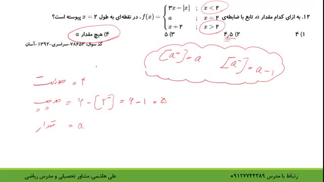 حل تست حد و پیوستگی قسمت سوم از علی هاشمی