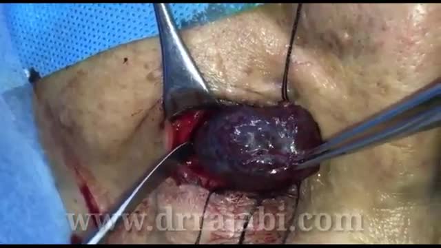 تومور بزرگی در پشت کره چشم که باعث فشار به چشم و عصب بینایی و کاهش دید شده بود.خوشبختانه پس از دسترسی از طریق برش پشت پلک و یافتن تومور، پس از آزاد کردن تمام چسبندگیها تومور بدون هیچ گونه عارضه و اثری روی بینایی خارج گردید. اطلاعات بیشتر در :