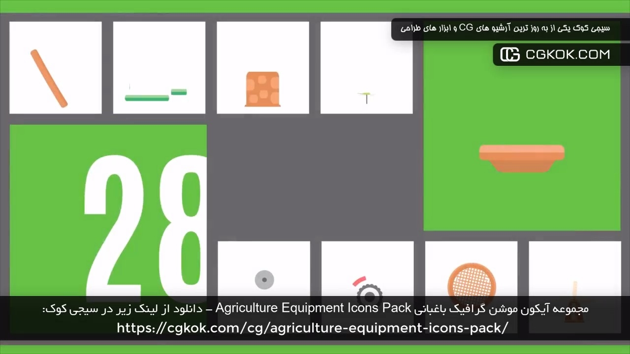 مجموعه آیکون موشن گرافیک باغبانی Agriculture Equipment Icons Pack از سیجی کوک: https://cgkok.com/cg/agriculture-equipment-icons-pack/