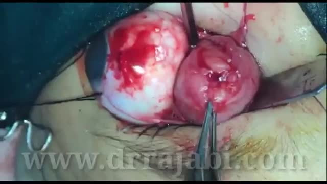 تومور وسیع عصب بینایی یا گلیوم در کودک سه ساله که باعث نابینایی و بیرون زدگی شدید چشم شده بود ابتدا توسط دکتر صمدیان جراح مغز و اعصاب کرانیوتومی شد و عصب نزدیک کیاسما قطع شد و سپس تومور با اربیتوتومی از کاسه چشم خارج شد