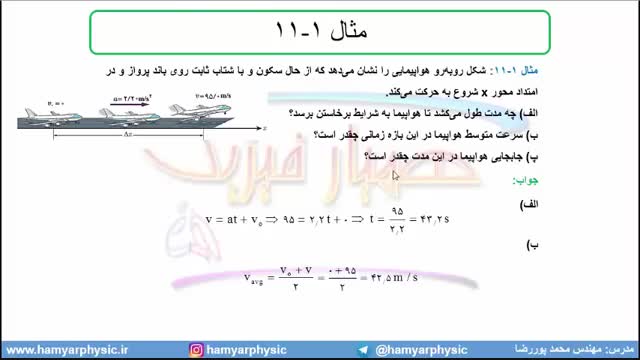 جلسه 34 فیزیک دوازدهم-حرکت با شتاب ثابت2 حل مثال 11 و تمرین 8- مدرس محمد پوررضا