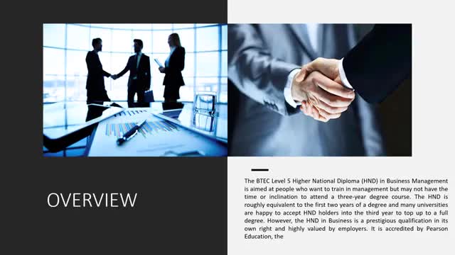 An online course through distance learning in Business Management is an excellent route to many jobs, such as becoming a project manager, business advisor, business analyst or management consultant, among others. The College of Contract Management offers an HND Business Management which is an online course studied through distance learning. You can study at your own pace and from wherever you are in the world. This course will take around 2 years to complete and will provide you with a well-recognised HND in Business Management.