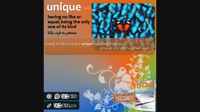 ویدیوکارد کلمه unique از درس هفتم کتاب ۵۰۴ واژه