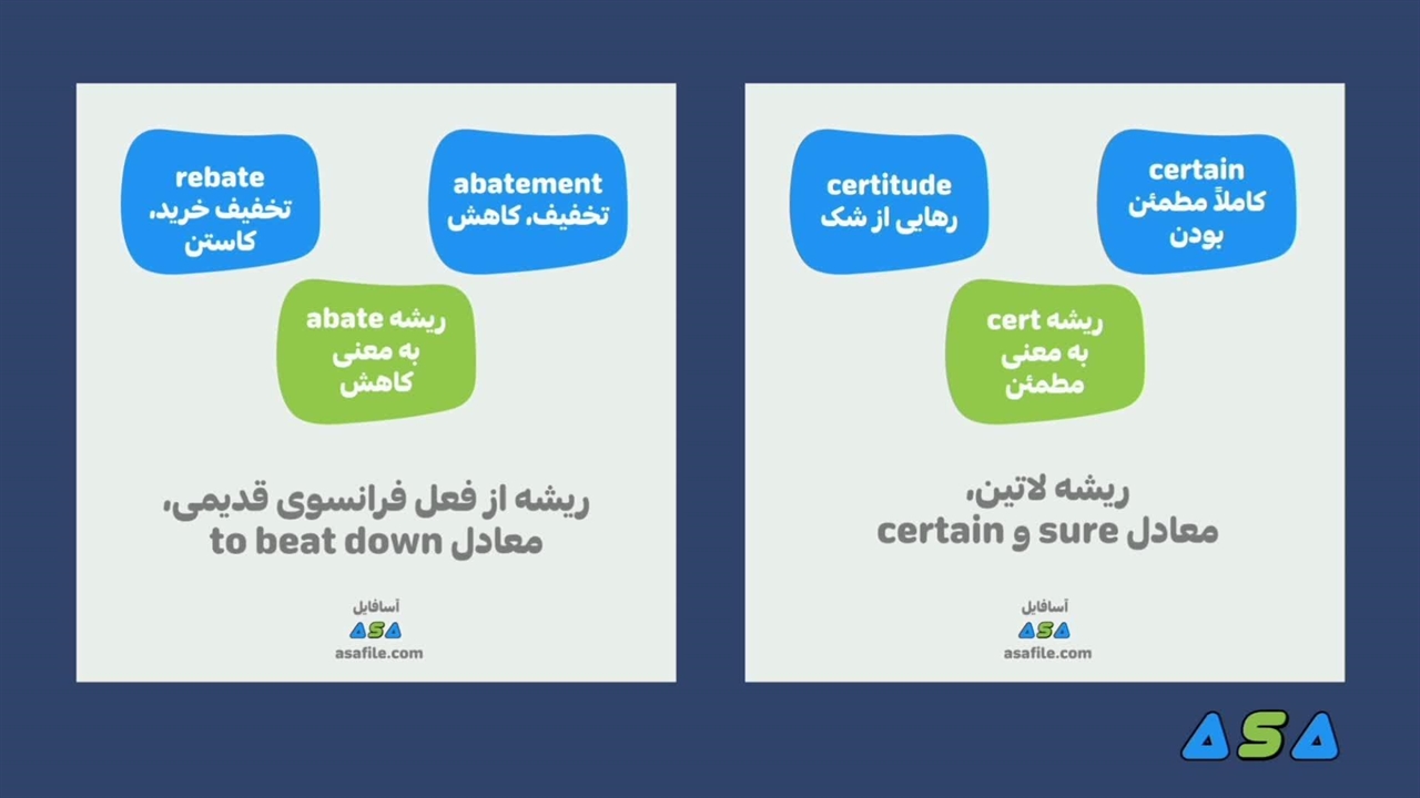 به دنبال روشی ساده و کاربردی برای یادگیری سریعتر کلمات جدید هستید؟ در تصاویر این ویدئو دو مثال در زمینه آموزش ریشهشناسی کلمات زبان انگلیسی آورده شده.