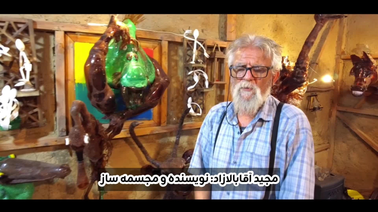 مجید آقا بالازاد هنرمند گیلانی متولد بندر انزلی که در عرصه نویسندگی و سازههای بازیافتی فعالیت میکند