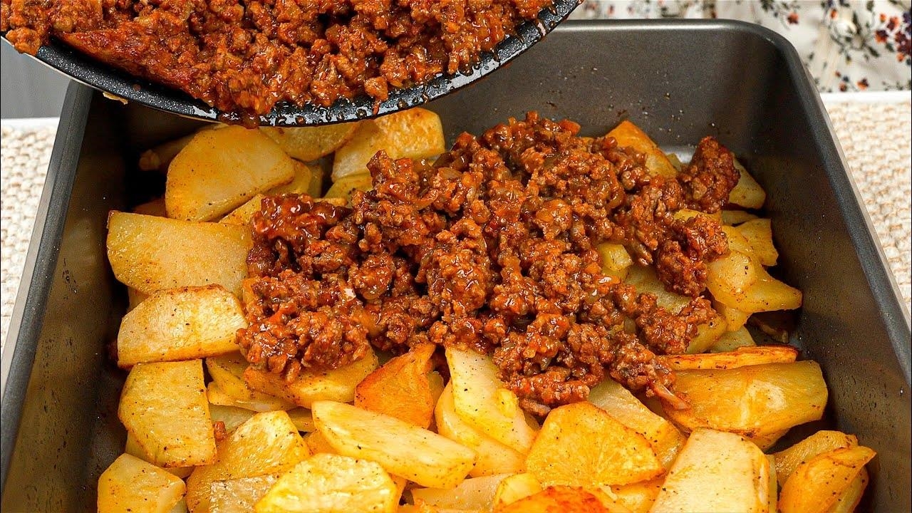 فقط گوشت چرخ کرده را به سیب زمینی اضافه کنید! دستور غذای ساده برای شام!
