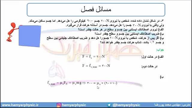 جلسه 100 فیزیک دوازدهم - نیروی اصطکاک 11 - مدرس محمد پوررضا