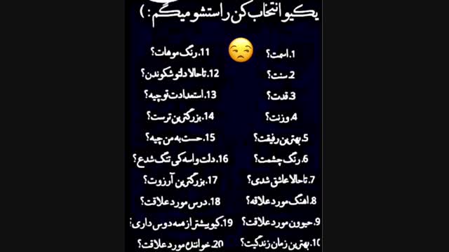 پخش صدا یکیو انتخاب کن :/ اشتراکگذاری لیست پخش ۱۱۳ نظر ۱۱۳ نظر دانلود دانلود ویدیو دانلود کیفیت 144p ۱۷.۱۶ کیلوبایت گزارش تخلف بیشتر گزینههای بیشتر لیست پخش لایکها گزارش تخلف ۱۰ لایک دُخـترِ منتشر شده در تاریخ ۱۳۹۹/۱۱/۲۵ این کانال دنبال شد دنبال کردهاید دنبال کردن این کانال دنبال کردن بجز اسم بقیه رو جواب می دم :/بیشتر از ۳ تا هم نمی تونی بپرسی /: ادامه نظرات (۱۱۳) Loading...